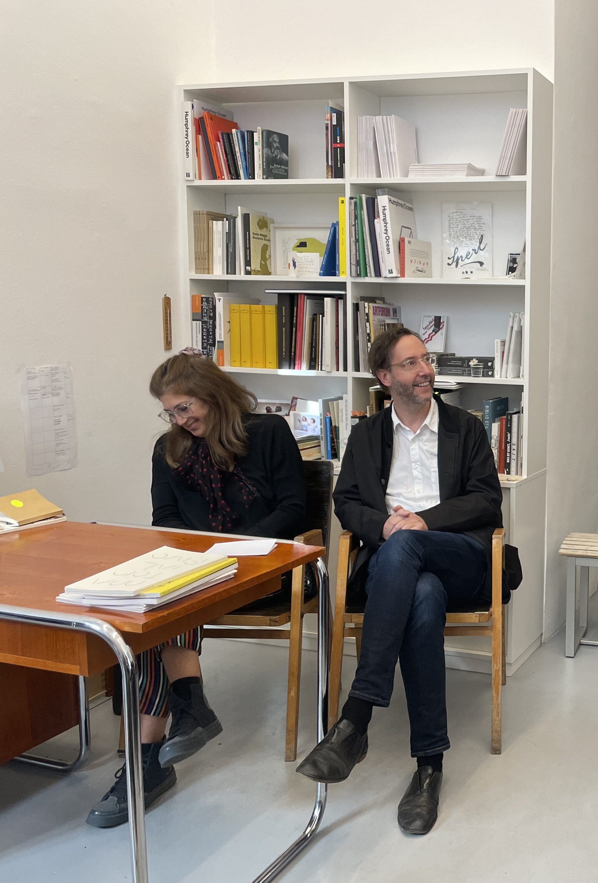 from the series CONVERSATIONS: Ovidiu ANTON, Negin Rezaie and Andreas Spiegl, presentation of LoCD: Library of Civil Disobedience, taking place within the frame of the exhibition Ovidiu ANTON | The same as the last, but darker at the bottom than the top is on view, June 2025, Photo: Emma Dirnhofer
