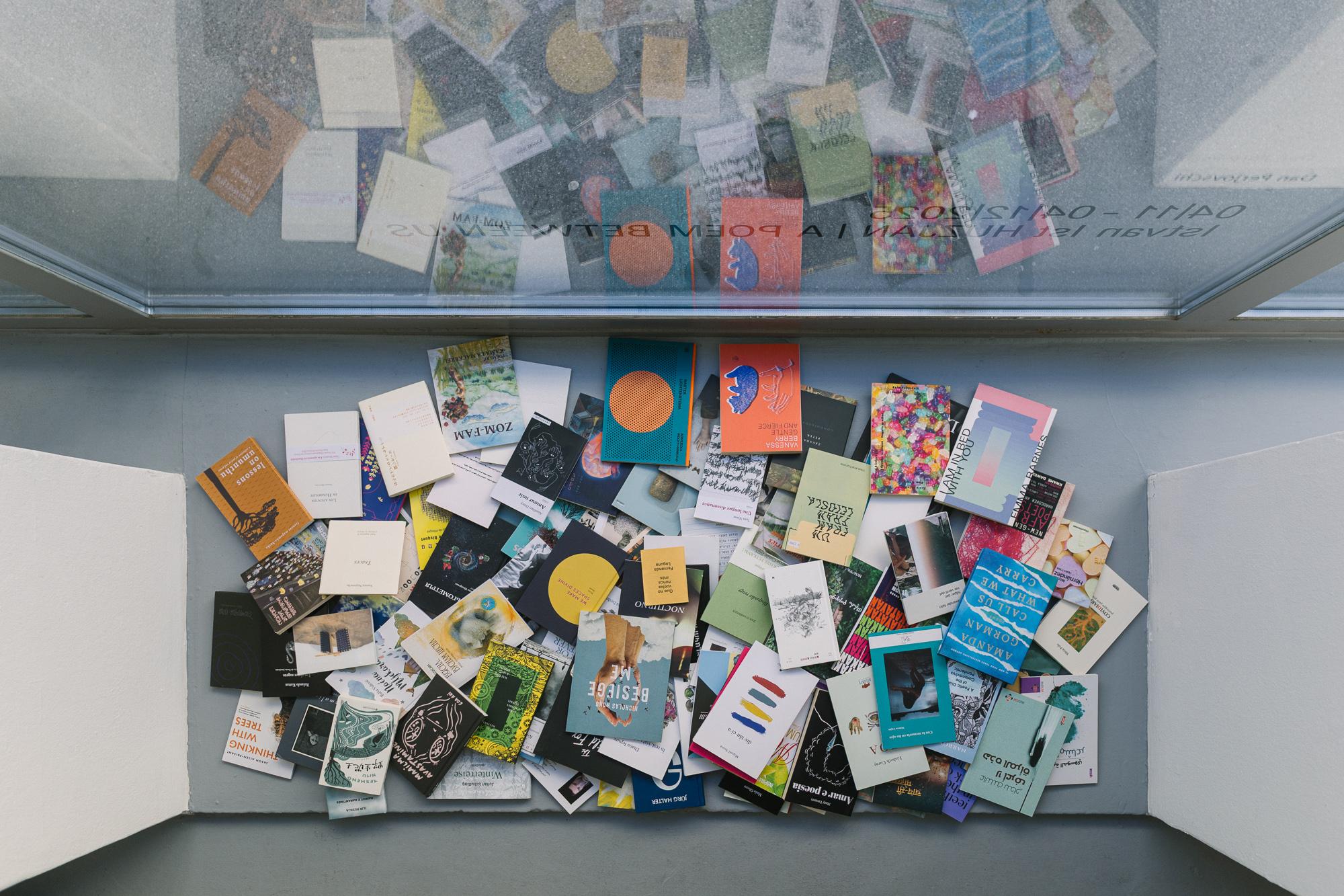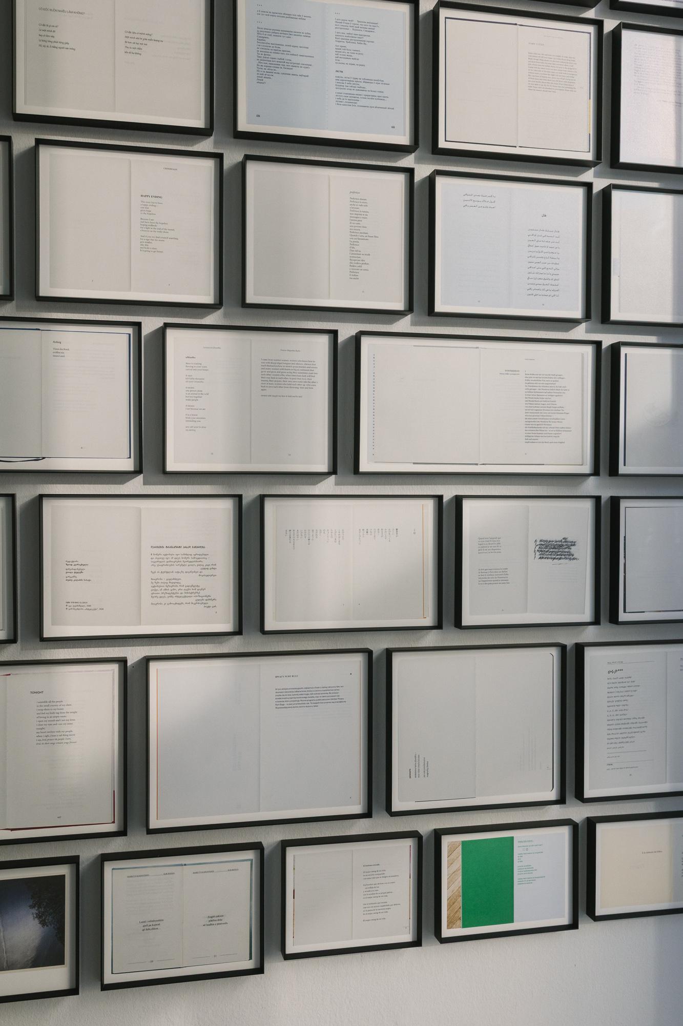 The year 2020, as well as the following one, saw a proliferation of textual output and also of poetry, which demands high concentration on the imagination to reflect on experience in a condensed way. Similar to the fact that a pandemic is a phenomenon that concerns the entire planet, Huzjan did a worldwide research on younger poets and their works in whatever country possible. He tried to collect, order, and buy as many books as possible with the poems written in their original language. For his photographic series, he chose to take a picture of the first poem in each book, which led to 100 photos altogether.