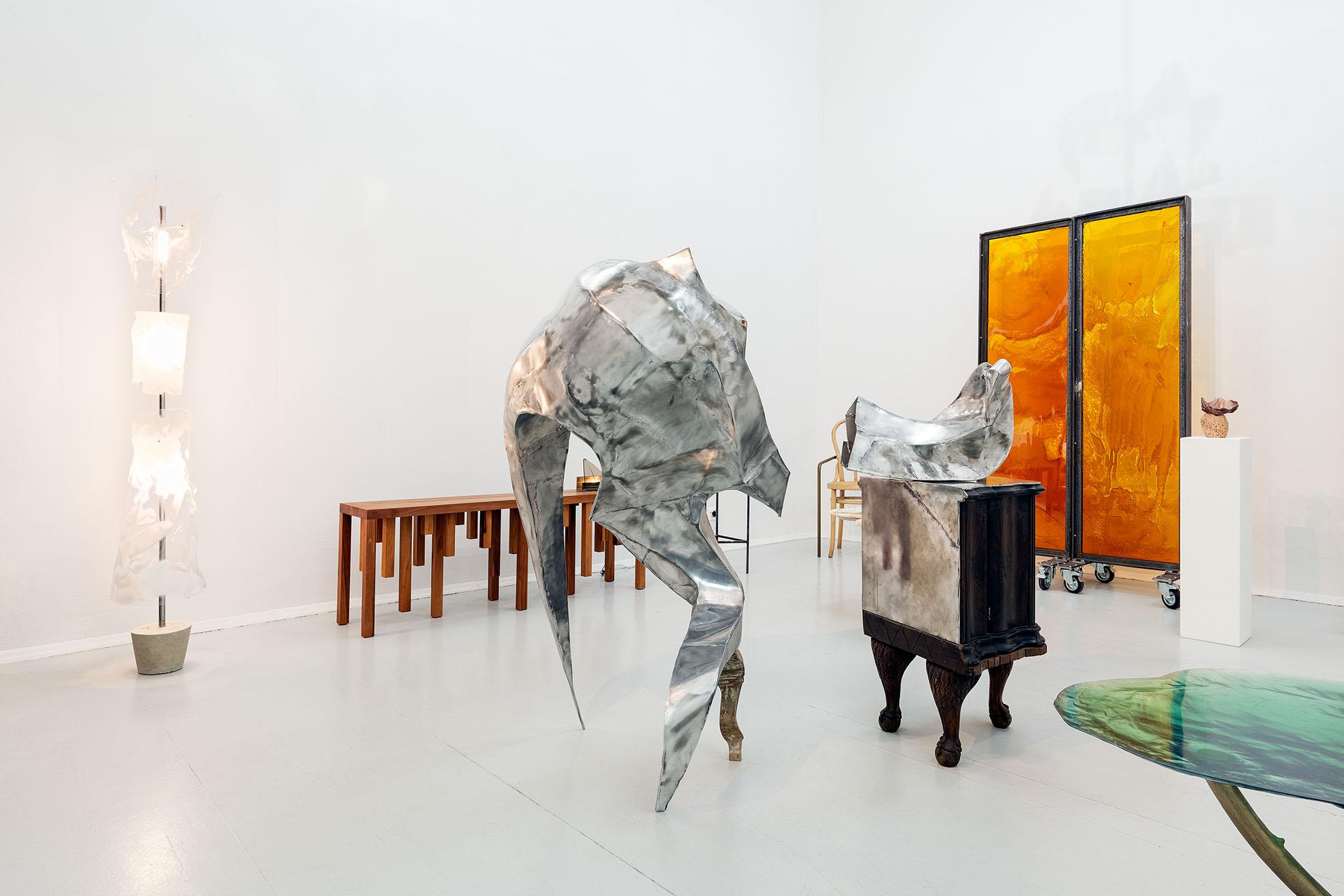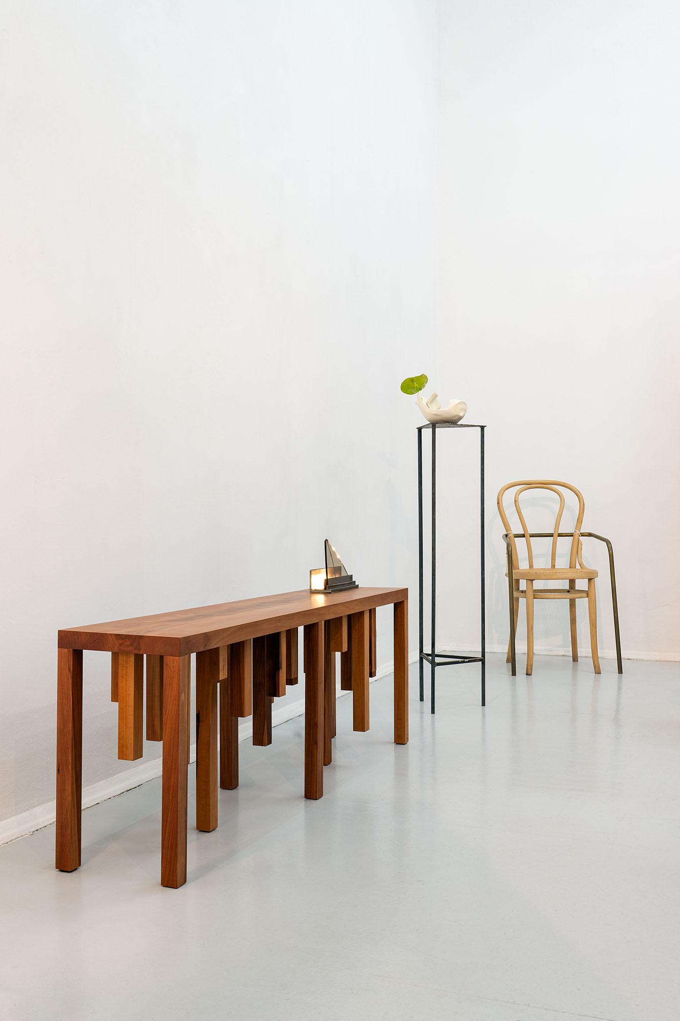 The Berlin-based design collective LABINAC presents experimental artistic works by its members Maria Thereza ALVES, Jimmie DURHAM, Rosaria IAZZETTA, Jone KVIE, Philipp MODERNSOHN, Alessandro PIROMALLO and Víctor SANTAMARINA. On display are reinterpretations of Thonet chairs, tables inspired by Mediterranean pine trees, lamps that pay homage to the topiary forms of garden culture, and chandeliers made of stainless steel, Murano glass, and LED lights. LABINAC was founded in 2018 by artists Maria Thereza ALVES and Jimmie DURHAM together with Kai-Morten VOLLMER with the aim of designing and manufacturing objects from an artist’s perspective.
