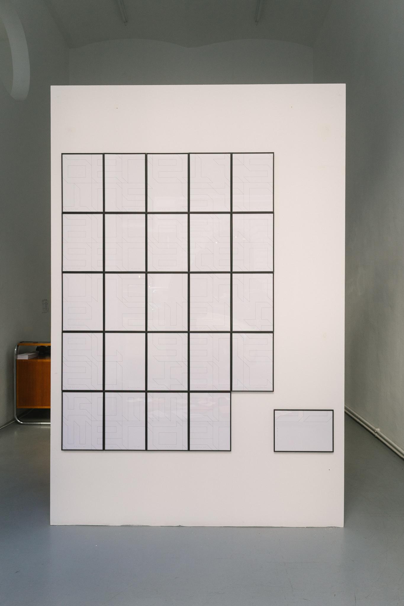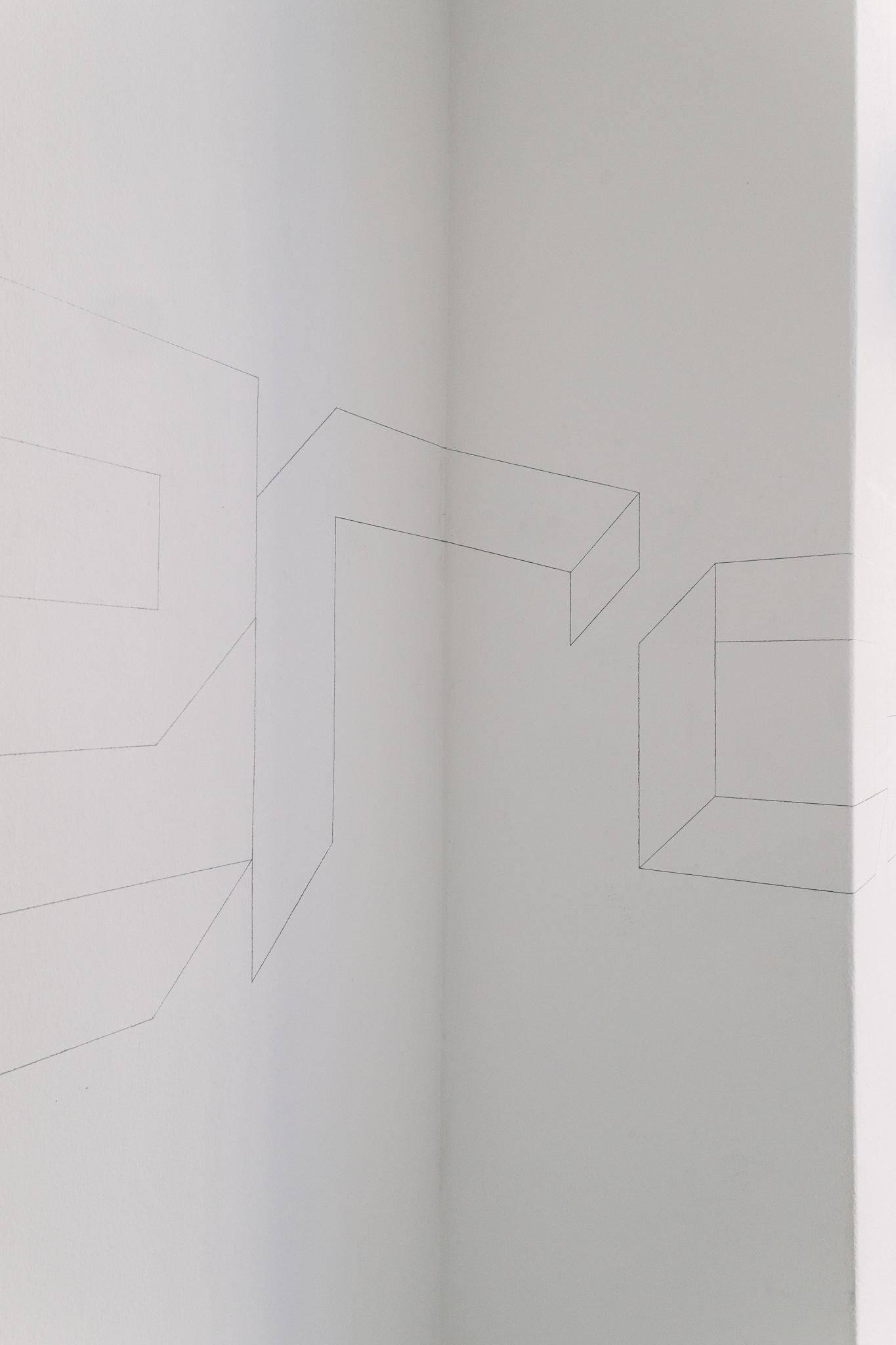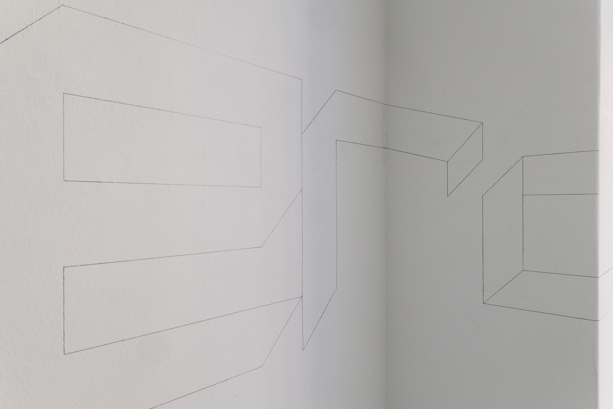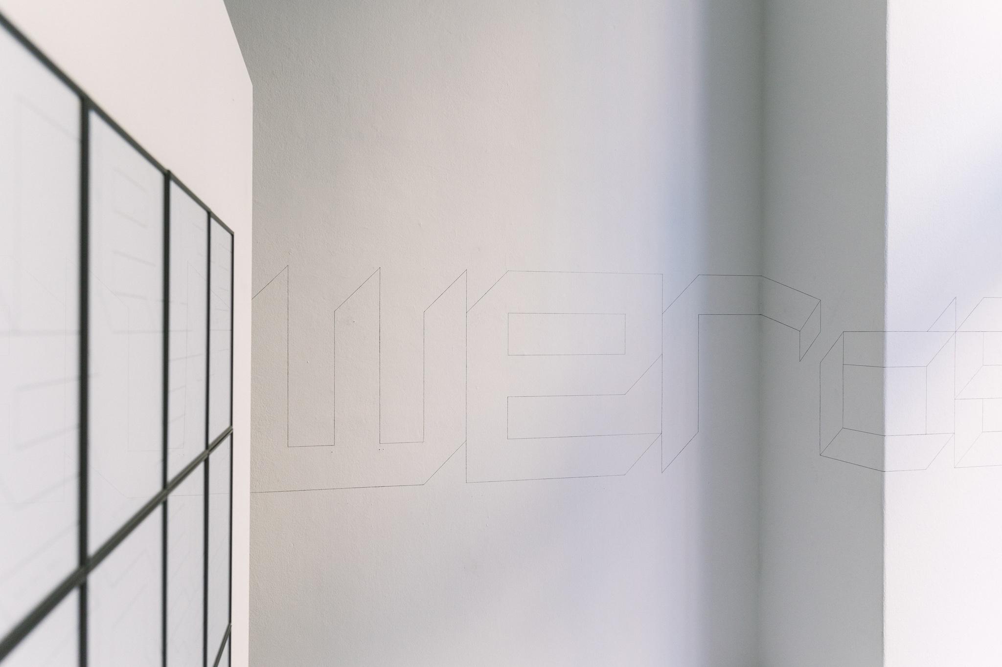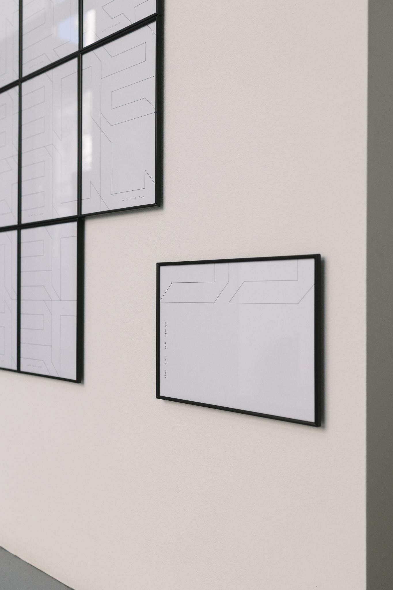 Lebe Wohl / FAREWELL depicts the final words from Don Quijote: … already stumbling and will undoubtedly fall completely. Farewell! Using a very reduced formal language and straight, black fineliner lines, the artist deliberately removes these words from their context and interprets them as a metaphor for life itself. Because from the very beginning, failure and decay are inherent in life as an essential, yet also creative, process.